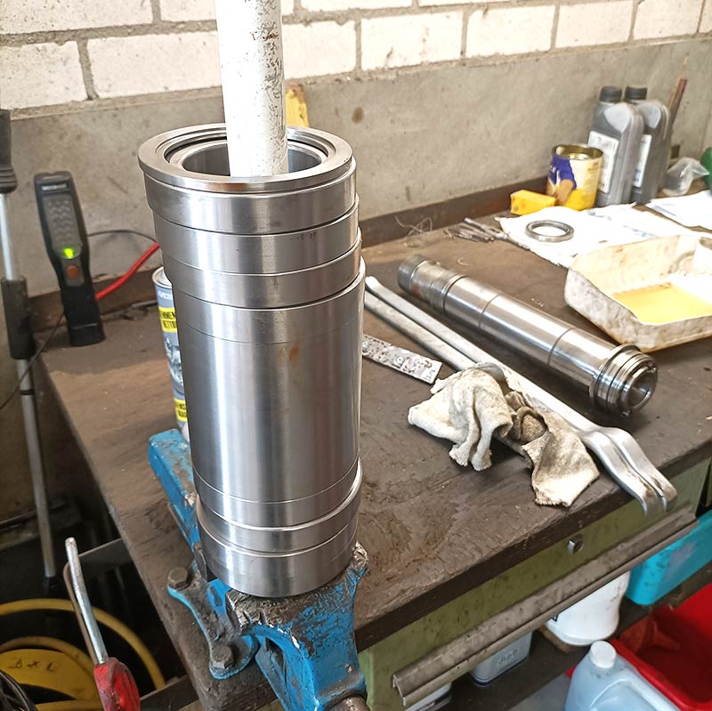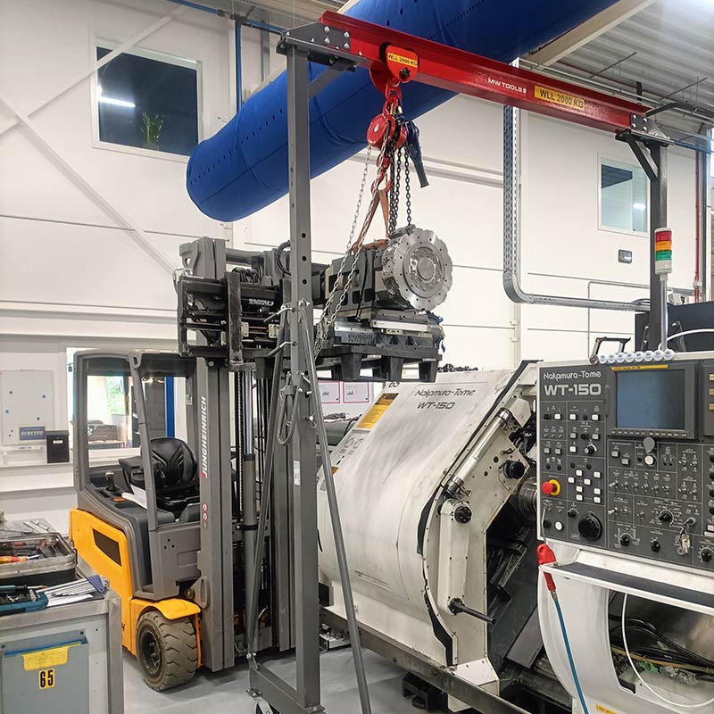 van een CNC-machine bij een klant in België – inclusief vernieuwen van kunststofgeleidingen.